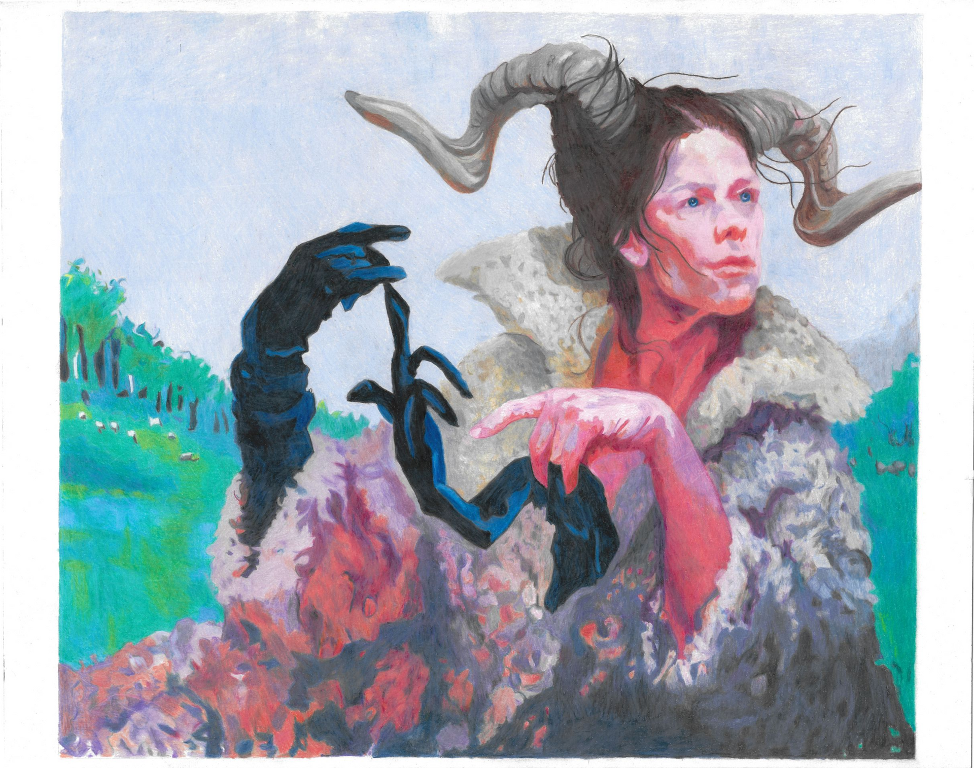 This drawing is vibrant and full of color.